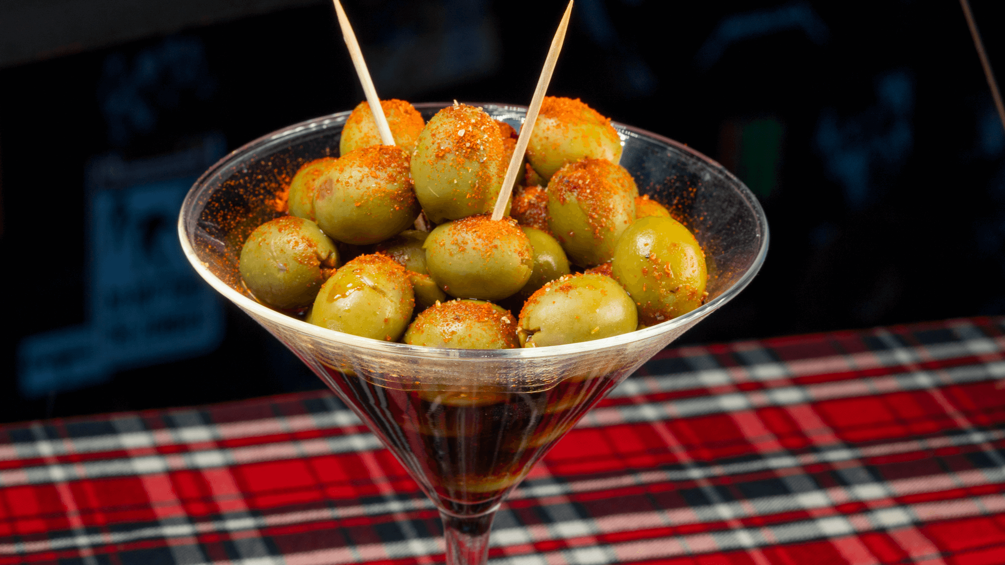 Deliciosas aceitunas bañadas en la salsa especial de la casa