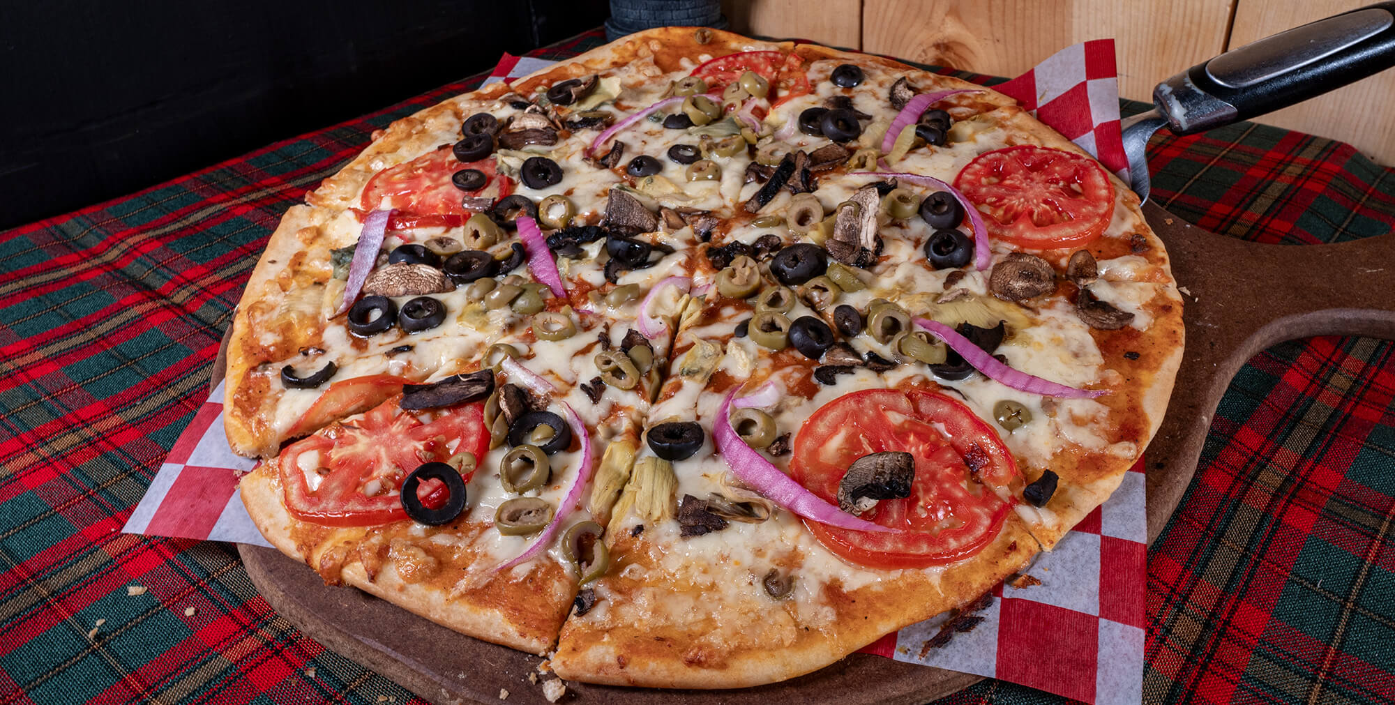 Albahaca, alcachofa, tomate, aceitunas verdes y negras.