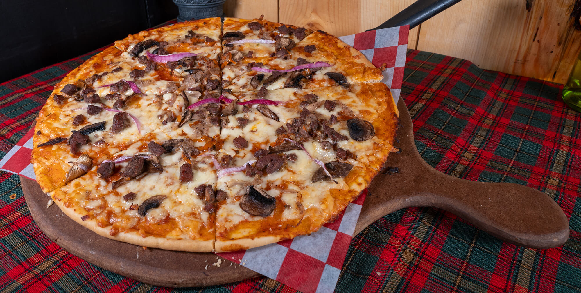 Milanesa de res y champiñones salteados en chile habanero y cebolla morada.